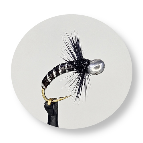 Enten du fisker abbor, sik, harr ørret eller røye vil du oppdage at denne typer fluer fisker effektivt. Her på Caddiskrok 10 som fiskes med kroken opp. Passer godt under en pimpel, lysblink eller som opphenger over en røyeblink. Agnes med maggot. Mørk brun kropp med svart bust og sølv ribbing. Leveres med ferdig bundet tafs.
